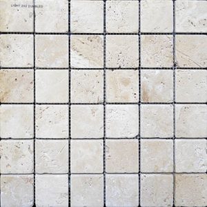 Travertine mosaics on mesh are perfect for kitchen back-splashes, bathroom walls, shower floors and walls. All mosaics comes on 12x12 sheets. Finish: Tumbled. AVAILABLE SIZES: 1x1 - 1x2 - 2x2 - 2x4